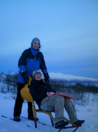 Die Schlittenfahrer Swaantje (DE), Laura (NL) und ich: