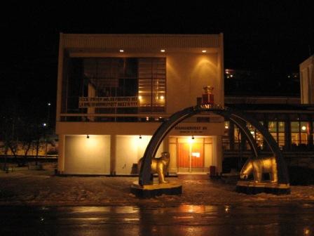Hammerfest Rathaus mit Eisbären als Stadtwappen:
